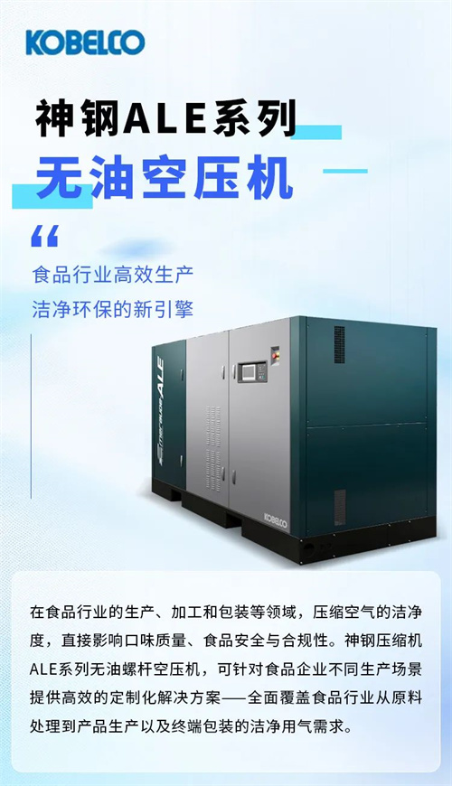 神鋼ALE系列無油空壓機賦能食品生產(chǎn)安全與企業(yè)能效升級